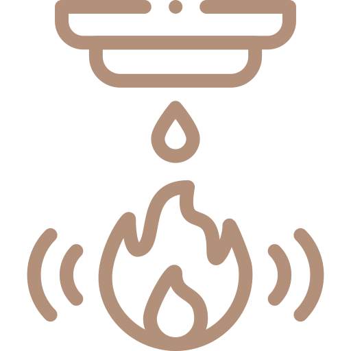 In the event of a fire alarm, immediately evacuate the building. The emergency exit route is displayed next to the room doors.